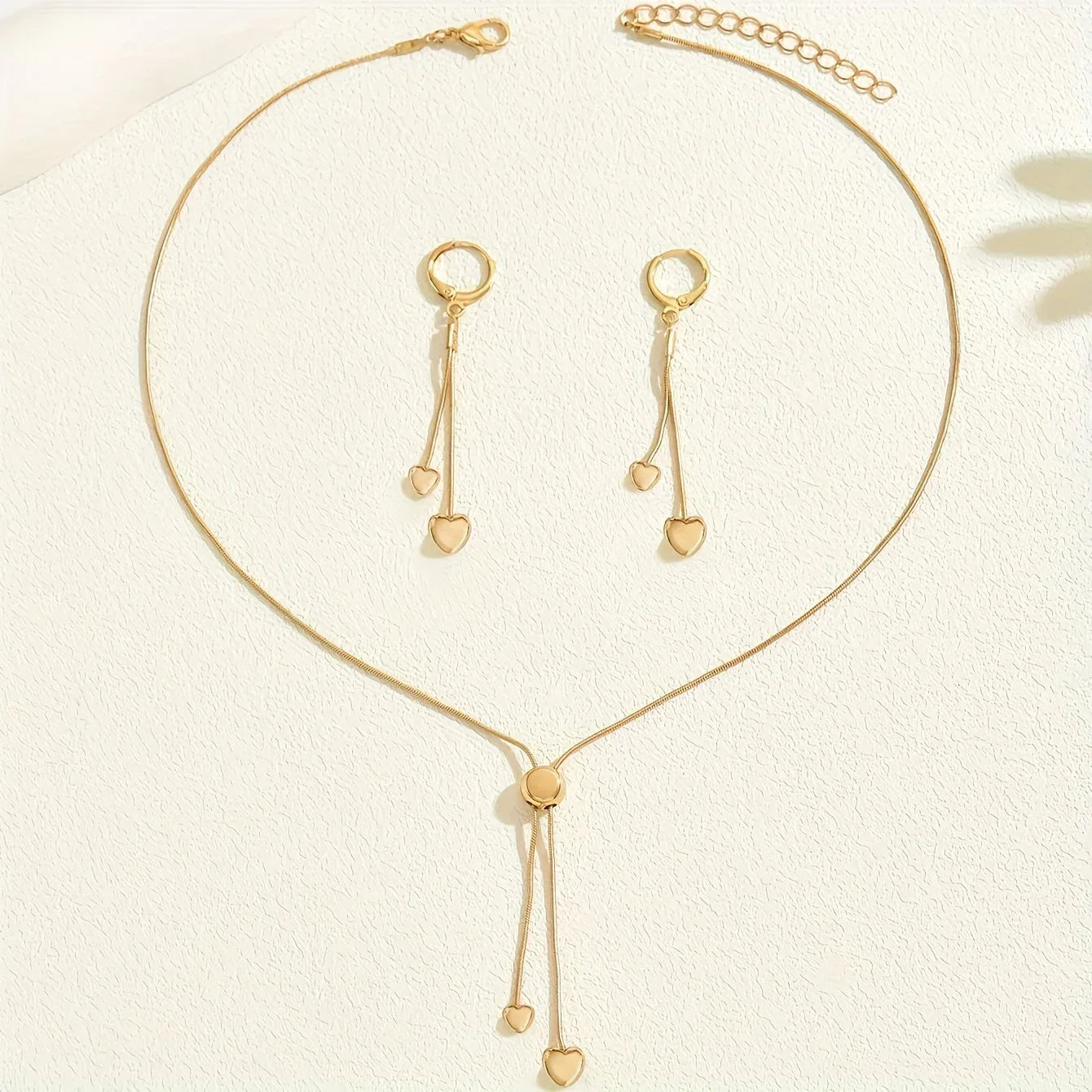Adjustable Heart Pendant Necklace & Earrings Set