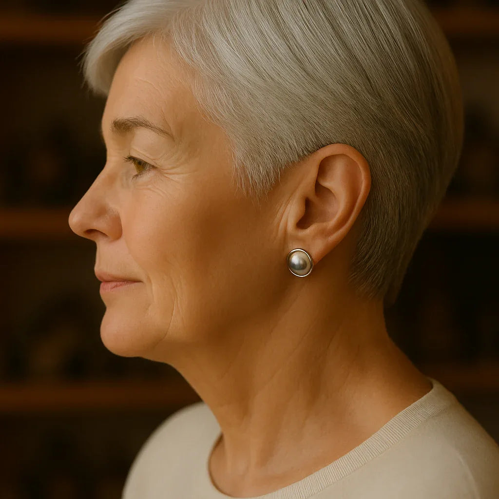 Smooth, elegant finish: The polished pearl and sculpted frame offer a soft feel and luxurious look without weighing down the ears.