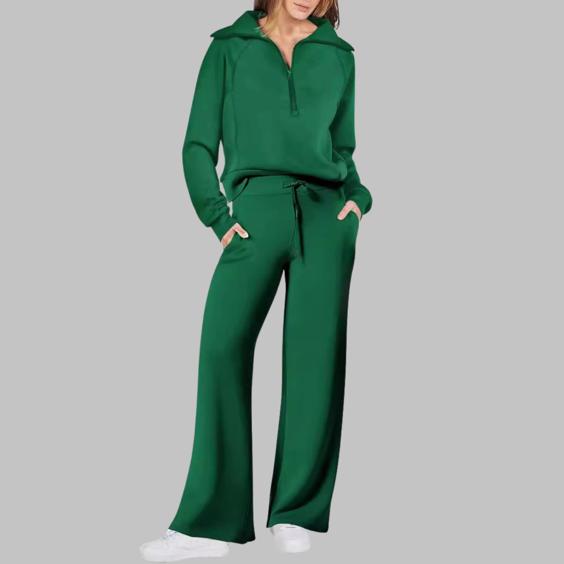 UDAY™ - Comfy Half Zip Sweatshirt and Wide Leg Pants Set
