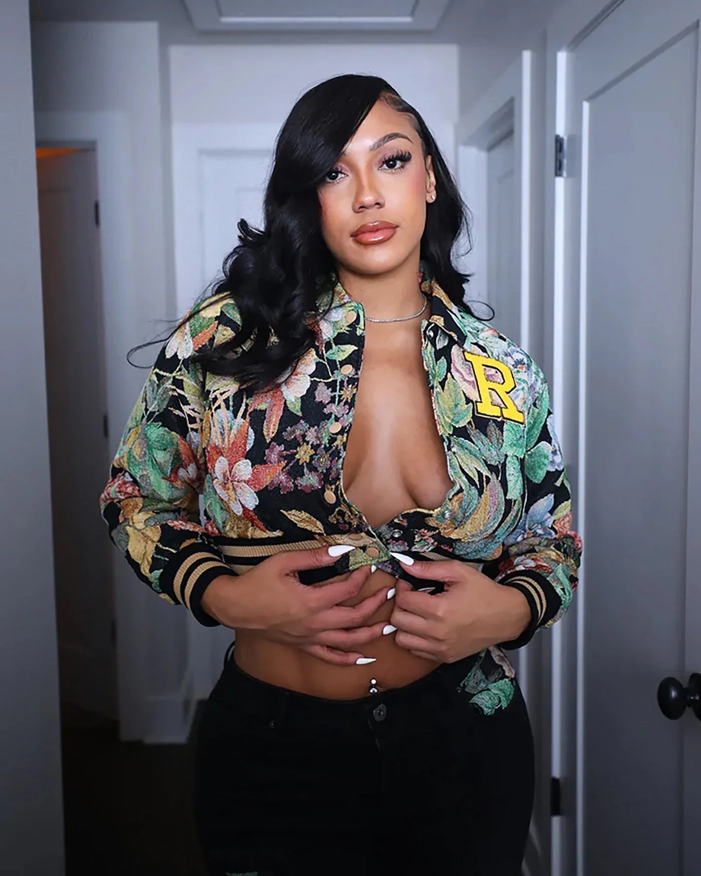 Why Choose HARA™ - Chic Floral Print Collared Crop Long Sleeve Jacket?