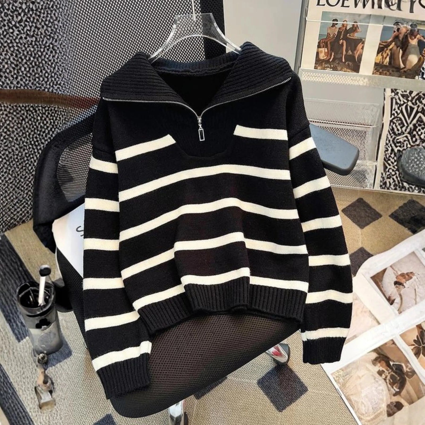 Elevate your style with NEVAEH™. Step into effortless elegance with our Chic Striped Long Sleeve Collared Top, designed for both casual outings and sophisticated events. This top will make you feel confident and stylish, no matter the occasion.